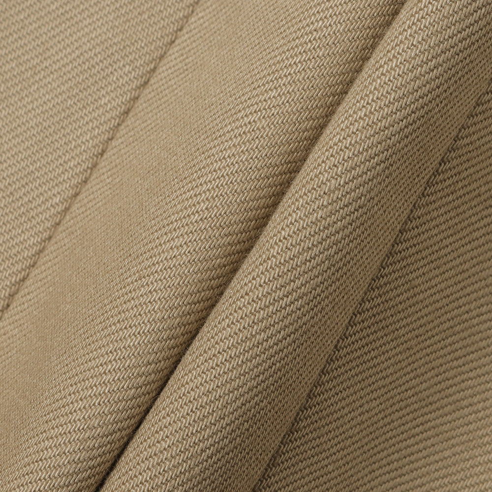 フランス軍のヴィンテージ品で見られるドリルチノを忠実に再現した生地を使用。短繊維・太番手の糸をあえて選び、ざっくりと織り上げることで、綾目が大きくやや毛羽とネップ感のある粗野なムードの生地に仕上がっています。