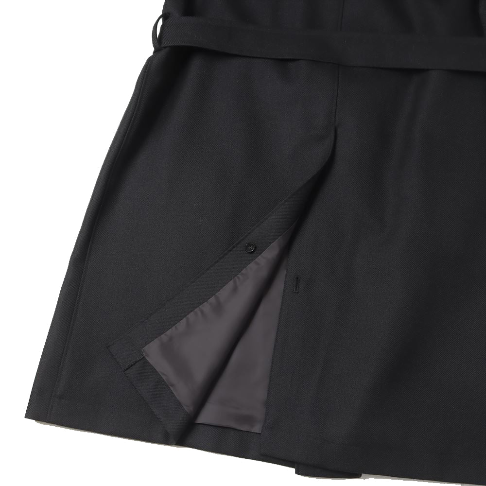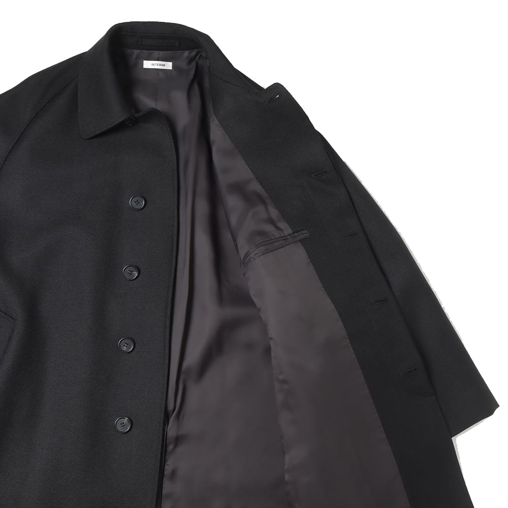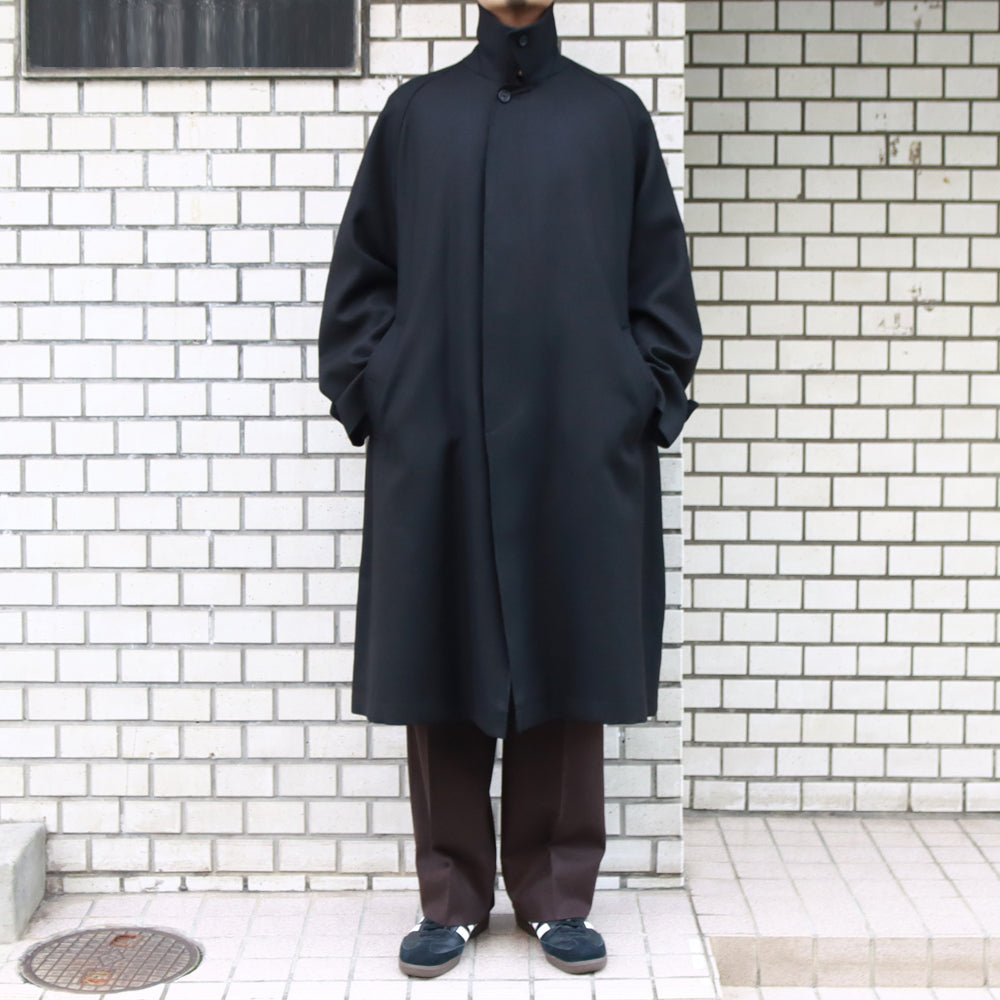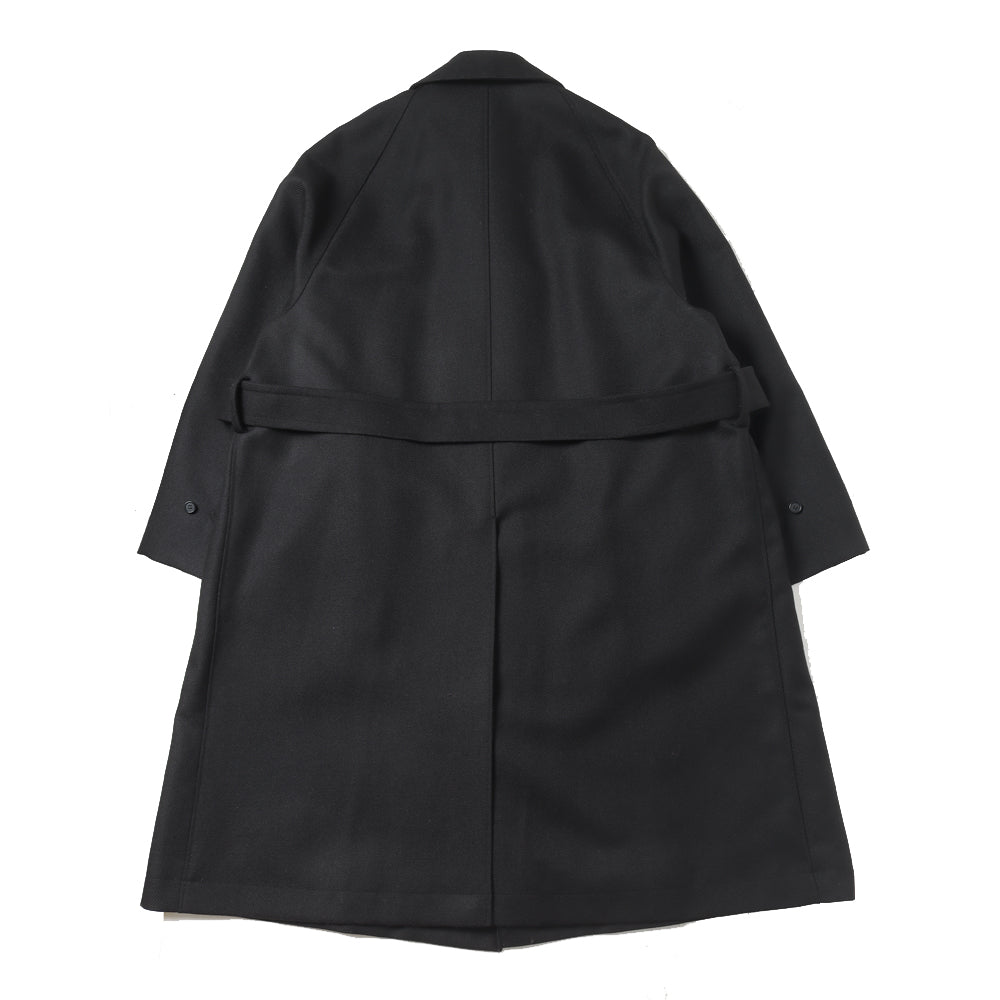 英国のクラシックなオーバーコートをベースにしたベルト付きシングルラグランコート。LVMHのデッドストックからピックアップしたイタリア製のダイアゴナル⽣地を使用。オーバーコートとしてジャケットの上からの着⽤を想定し、通常のシングルラグランコートよりゆったりとしたシルエットです。⾝頃裏・袖裏には表地とのバランスに合わせ、摩擦や湿気、静電気を抑えて快適な着⽤感のキュプラを採⽤しボタンには本水牛を使用しています。