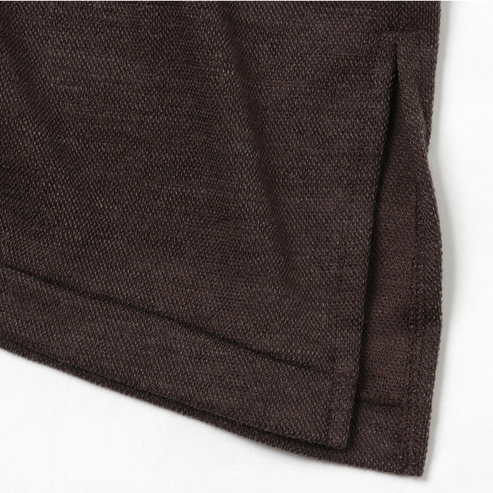 リラックス感のあるハイパービッグポロシャツです。仏LVMH社のデッドストック生地を使用。サイドに深めのスリットを⼊れることでデザインのアクセントにしています。肌触りの良さや着⼼地の快適さを感じられる⼀着です。