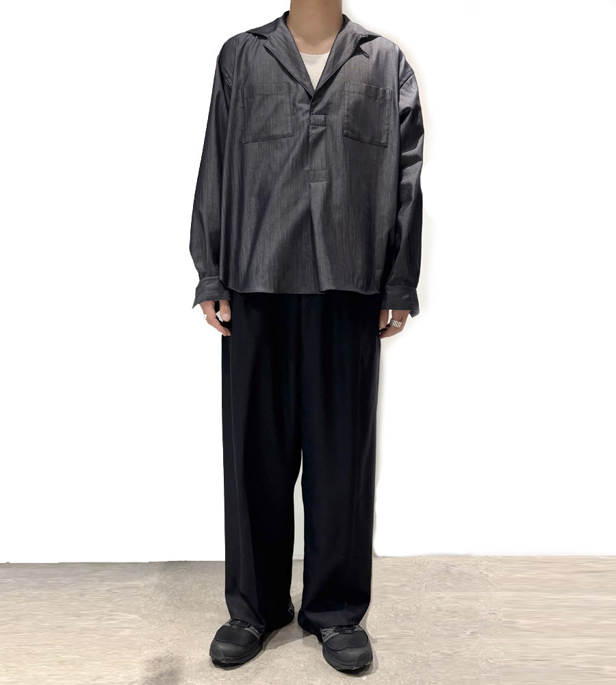 80年代の某デザイナーズブランドのスキッパーシャツを現代的に再構築しています。