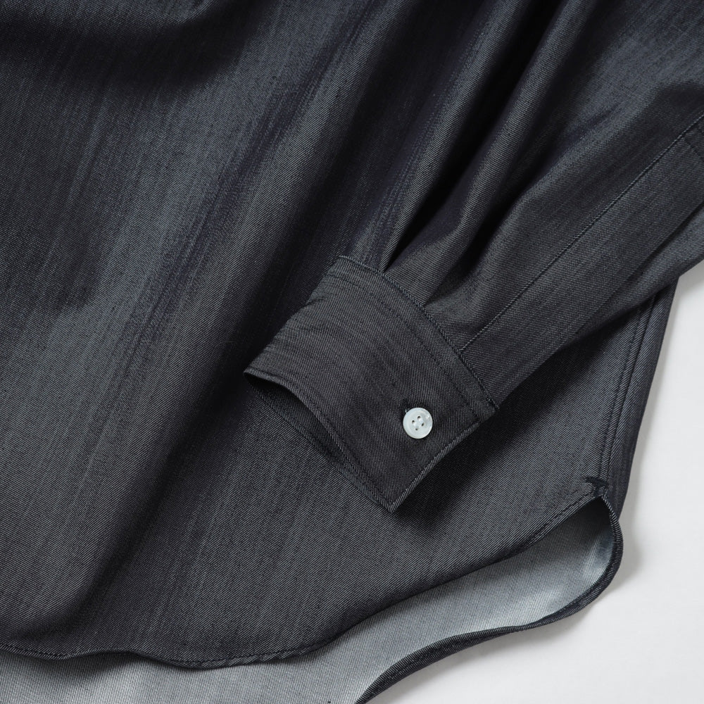 デニムと異素材の掛け合わせを得意とし、新たなアプローチを探求する国内デニム機屋によるシルクデニム。経⽷にスーピマの30番⽷、緯⽷にシルクを⽤いた⾼級素材によるデニム⽣地です。洗いをかけていくことで光沢感はそのままにインディゴ感が強まっていきます。