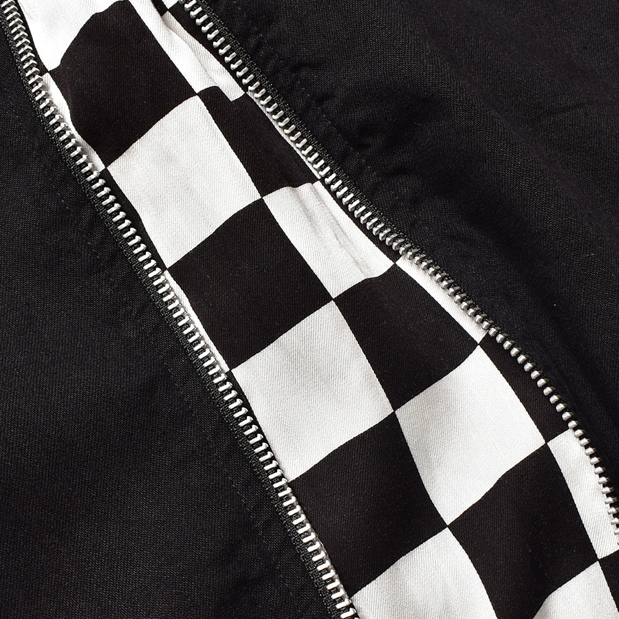 ・ジッパー内部パーツにはライトオンスキュプラデニムにオリジナルのチェッカーフラッグ柄をプリントした生地を採用