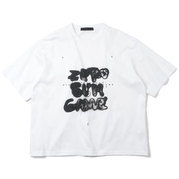 40/2の糸を使用した天竺素材にシルケット加工(毛羽を減らし、艶としなやかさをもたらす加工)を施したビッグシルエットのグラフィックTシャツです。
