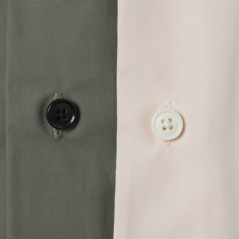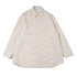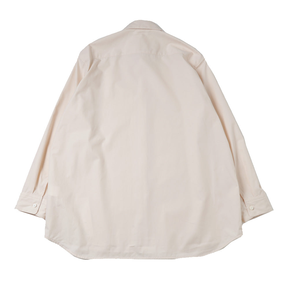 定番シャツとしてシーズンを重ねるごとに細やかに進化を続けているモデルです。 今季は襟をノーステッチにすることで、線の美しさを際立たせ、よりミニマルな印象にリニューアル。 裾は緩やかなラウンドにし、前後差をつけることで動きの中に陰影が生まれ、着丈のバランスも現代的に調整しています。 たっぷりとしたオーバーサイズの中に、ヘビーブロードの張り感としなやかなドレープが共存し、どの角度から見ても絵になるシルエットに。 定番でありながら、常に新鮮な表情を持つシャツです。 ラフに羽織っても、凛とした佇まいを失わない一枚です。