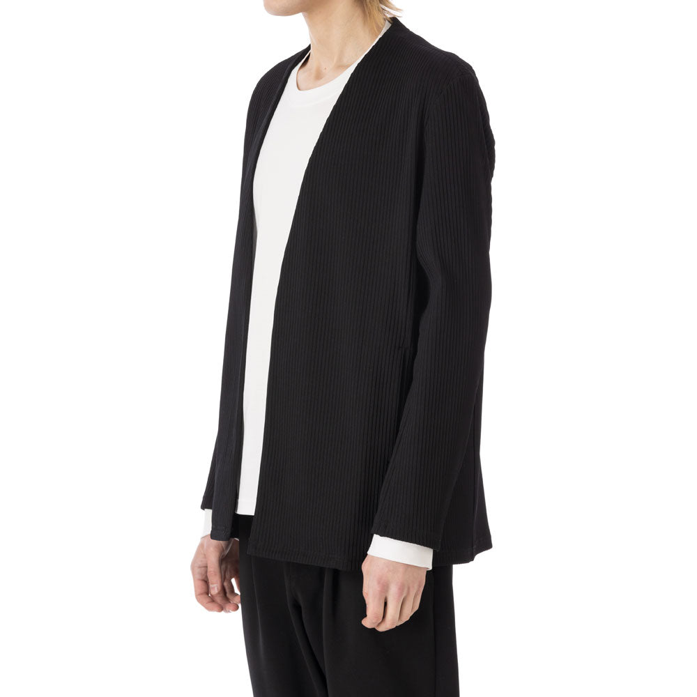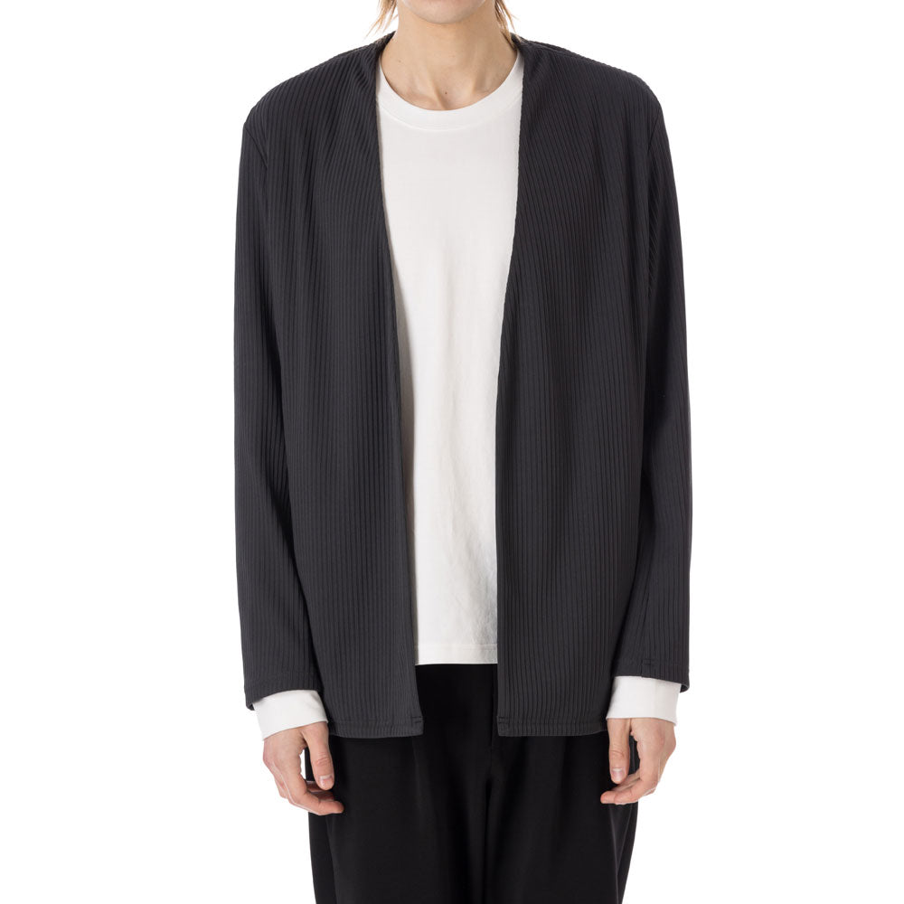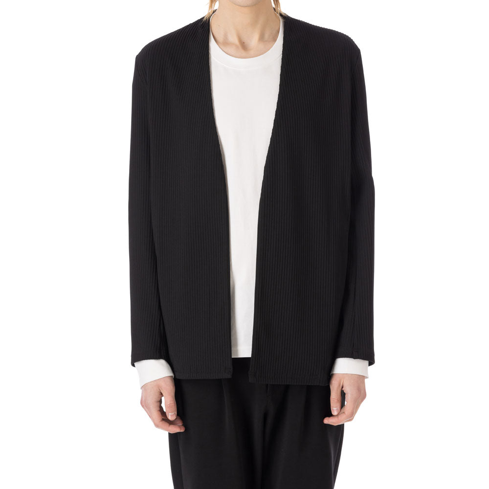 PE STRETCH RIB COLLARLESS CARDIGAN