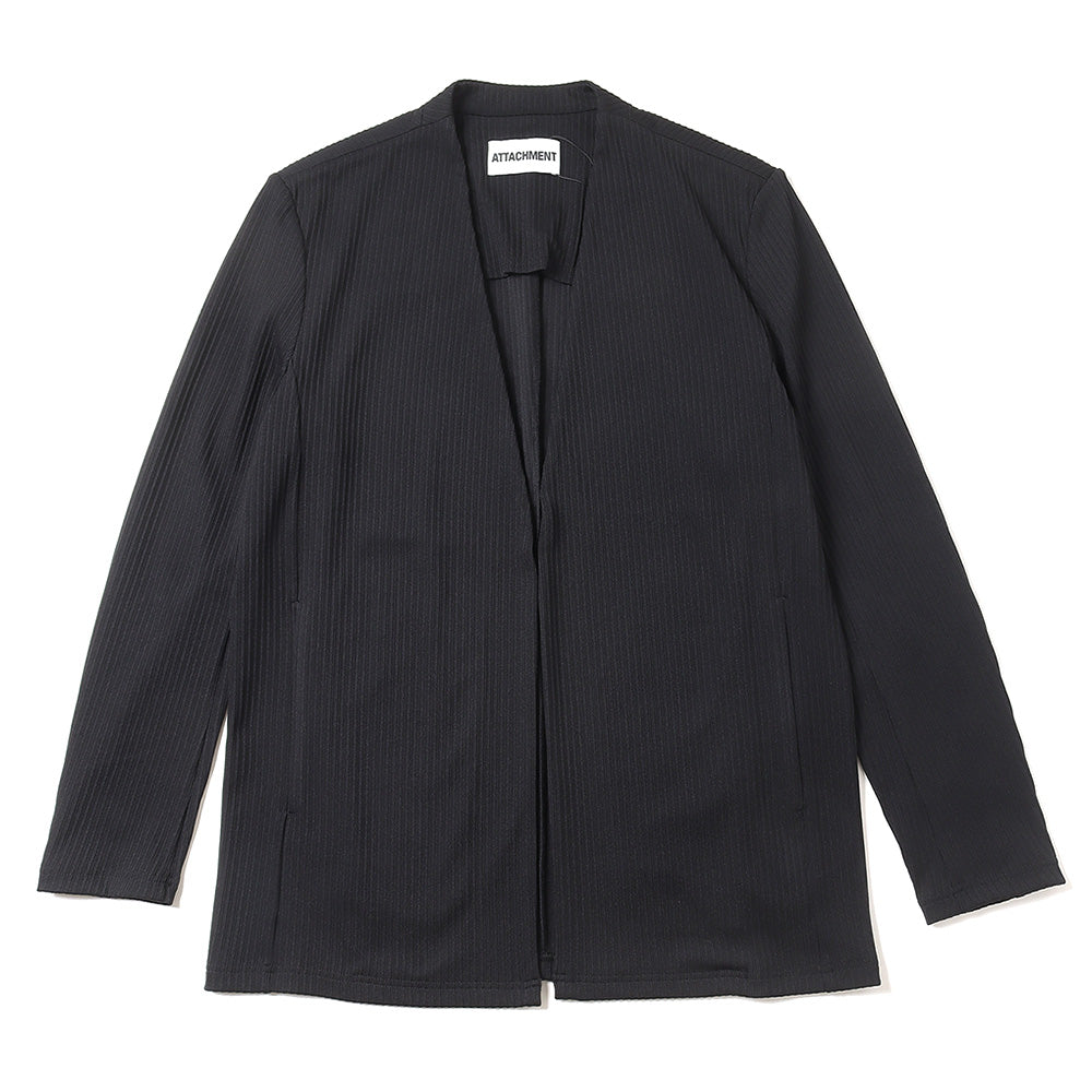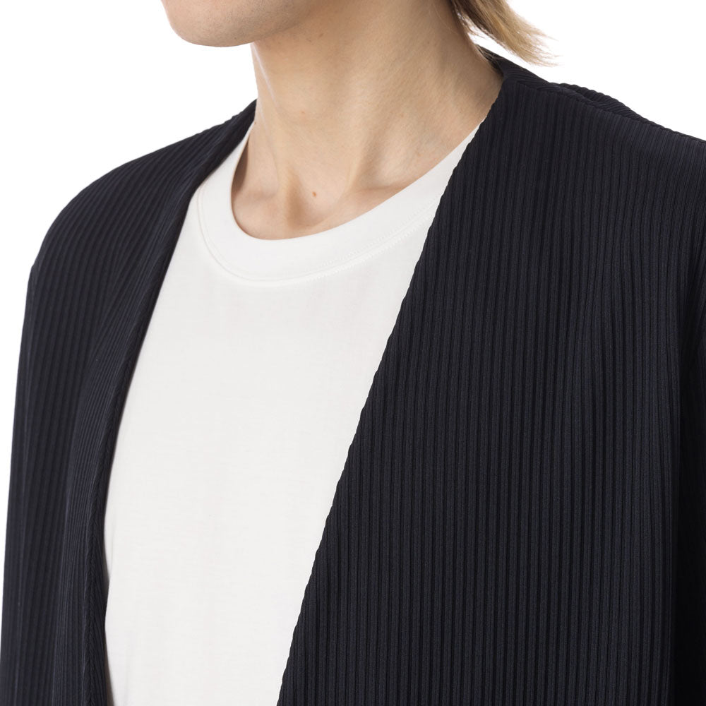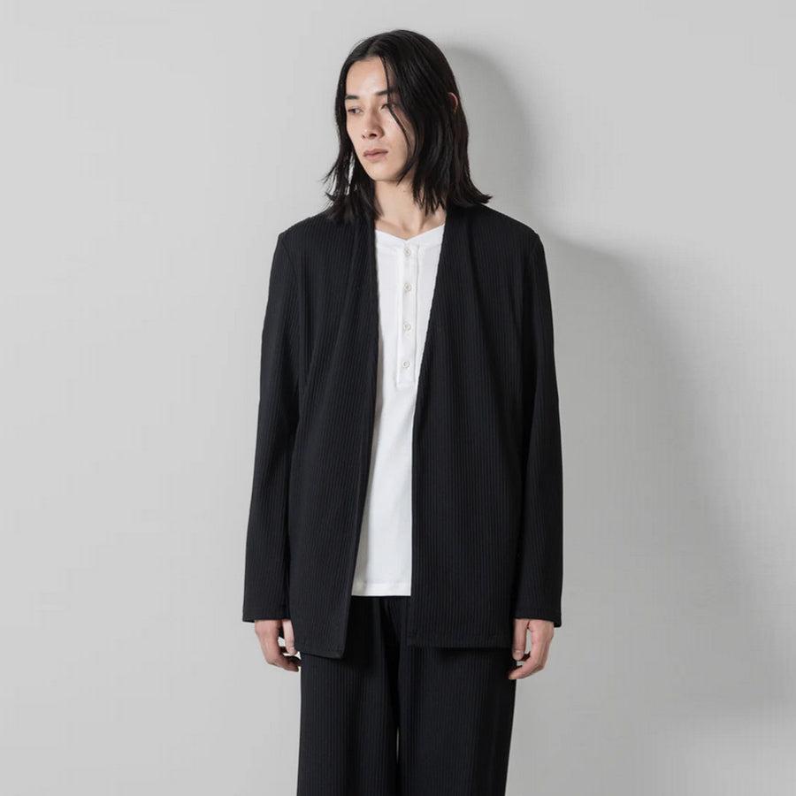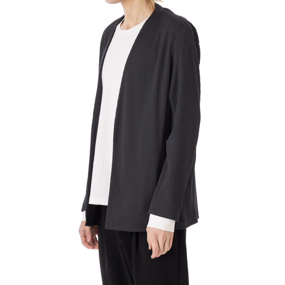 PE STRETCH RIB COLLARLESS CARDIGAN