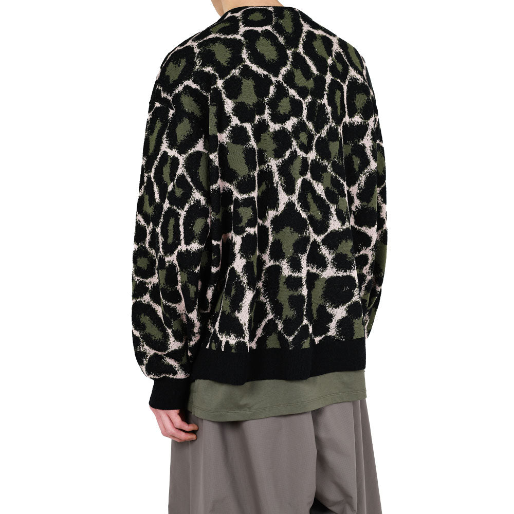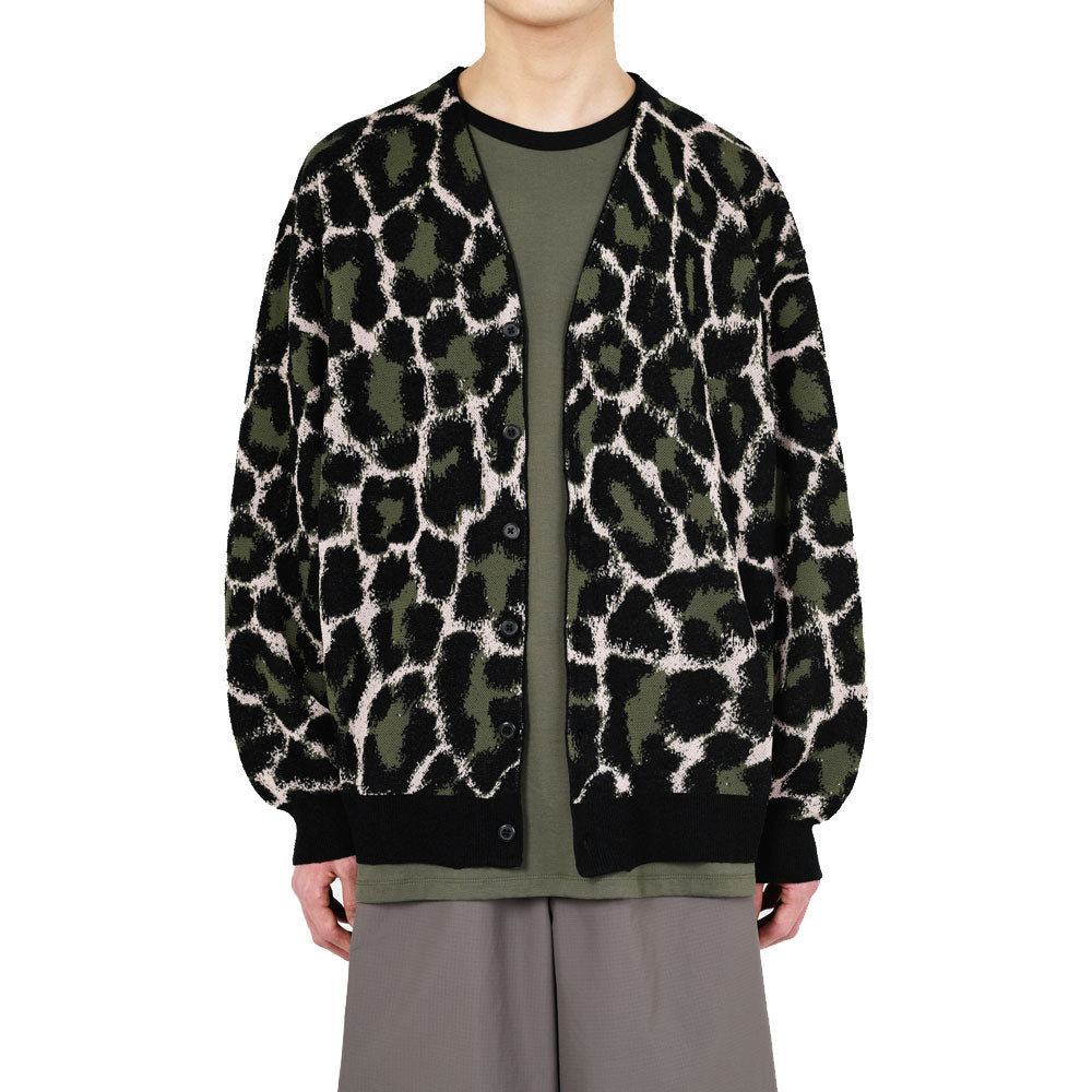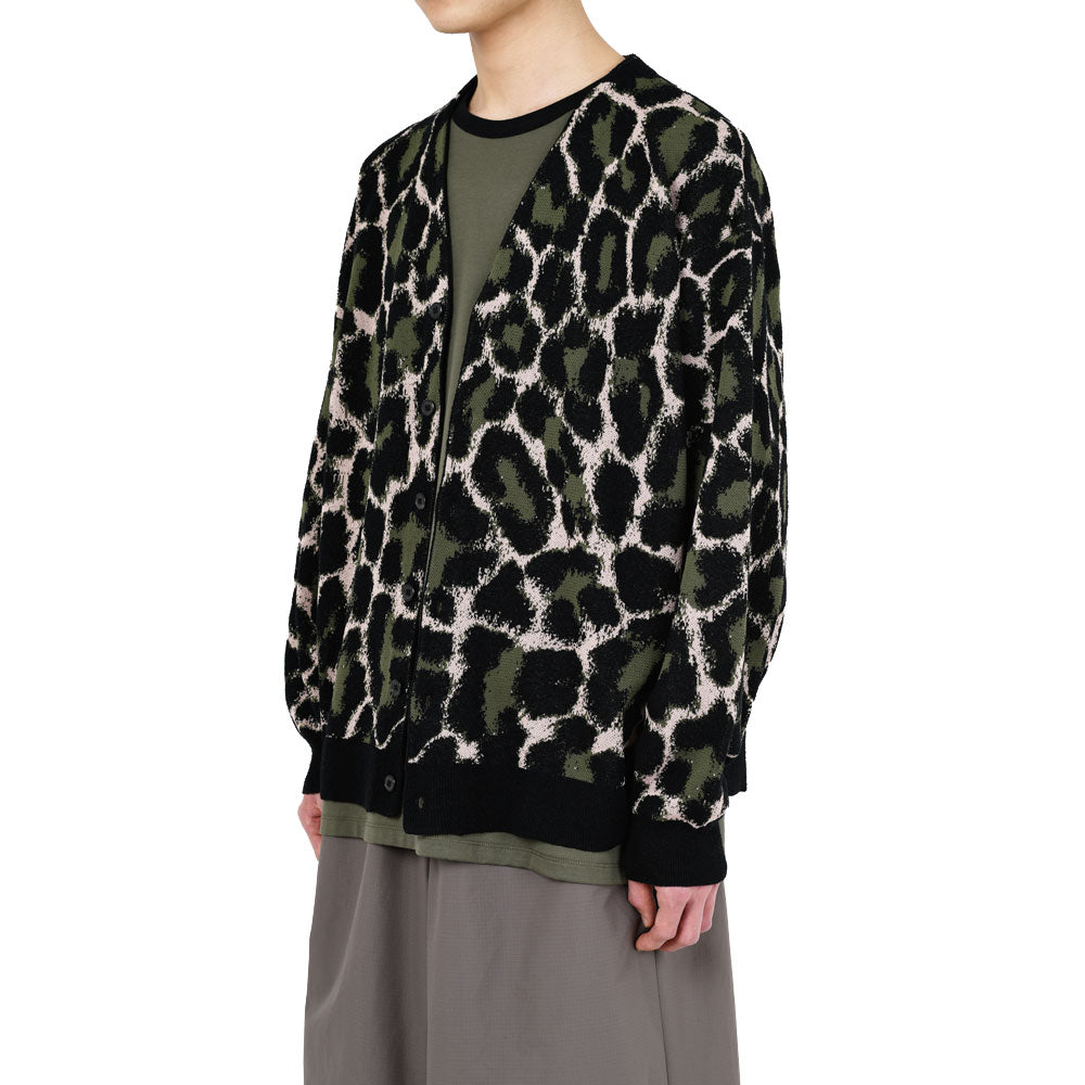 レオパード柄をジャカードで立体的に表現したニットカーディガン。