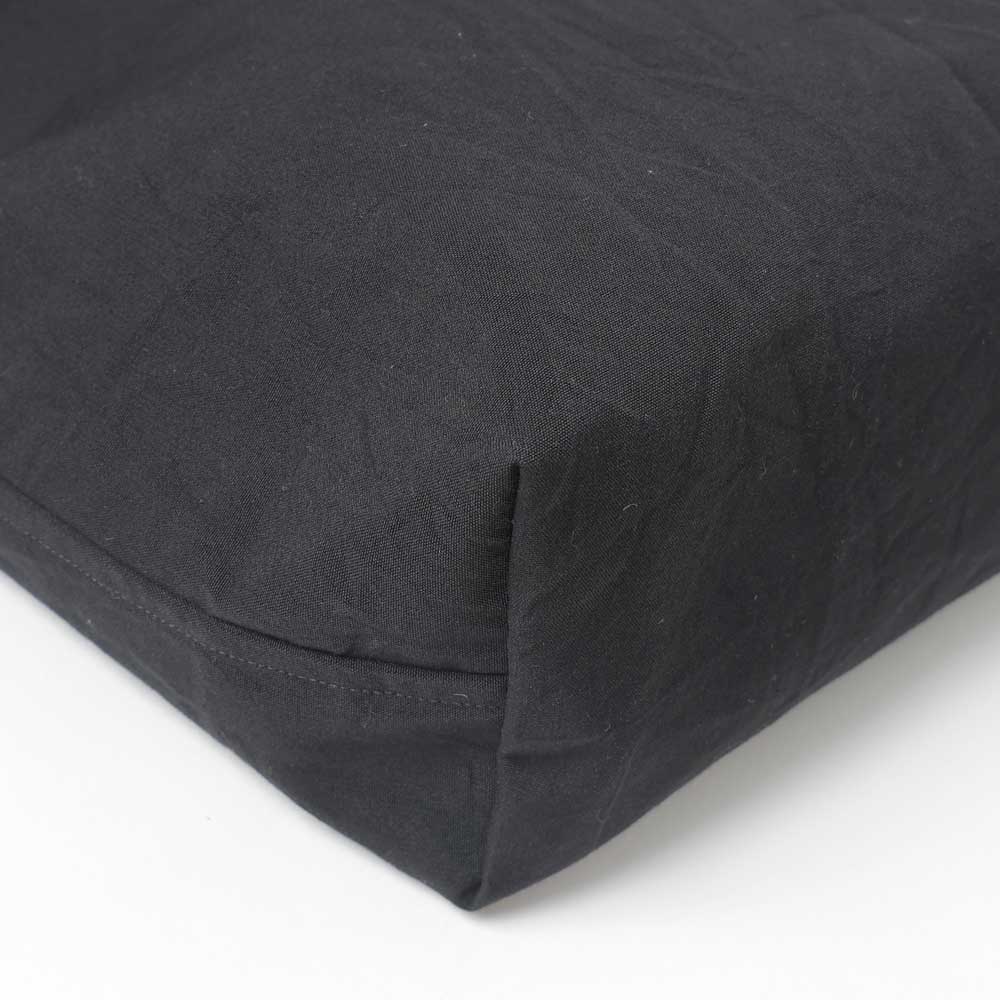 尾州地方の歴史のある機屋にて、旧式の織機を使用して製織したオリジナル素材になります。超長綿を経緯共に限界の超高密度で織り上げた平織物。超長綿の自然な光沢感を最大限に引き出した無骨さと奥ゆかしさが共存した表情が特徴です。製織後、機械を使用せず、長い時間を掛けて洗いと乾燥を施す事で、まるで長年寄り添って来た古布かの様な風合いを作っています。
