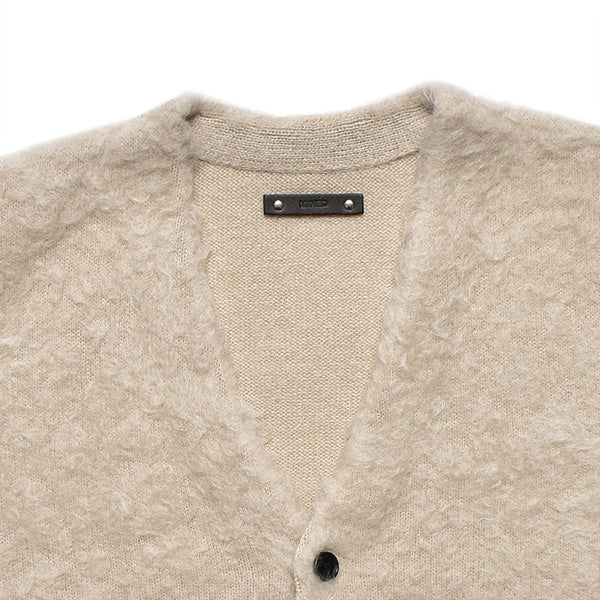 ・キッドモヘアを高い割合で混紡した最高級のモヘア糸を使用し、起毛加工を施すことでヴィンテージライクな毛足を表現したニット