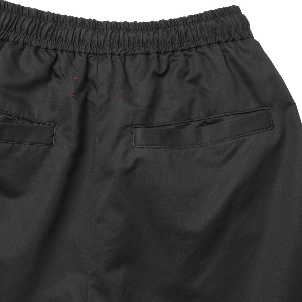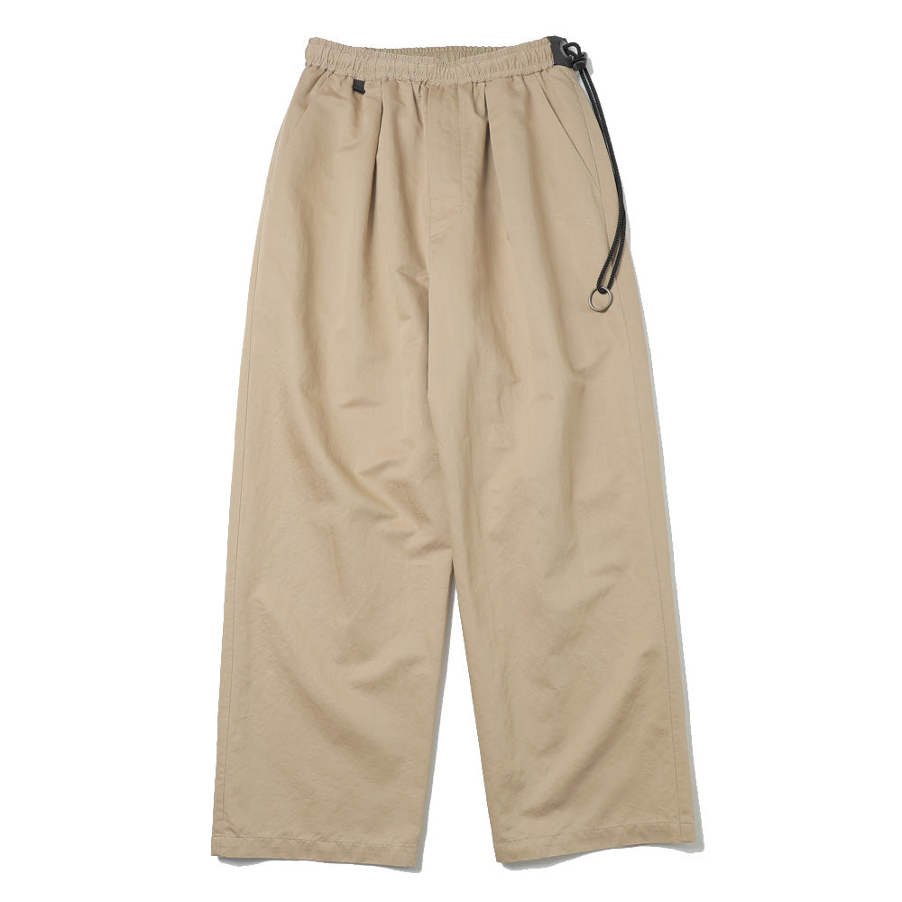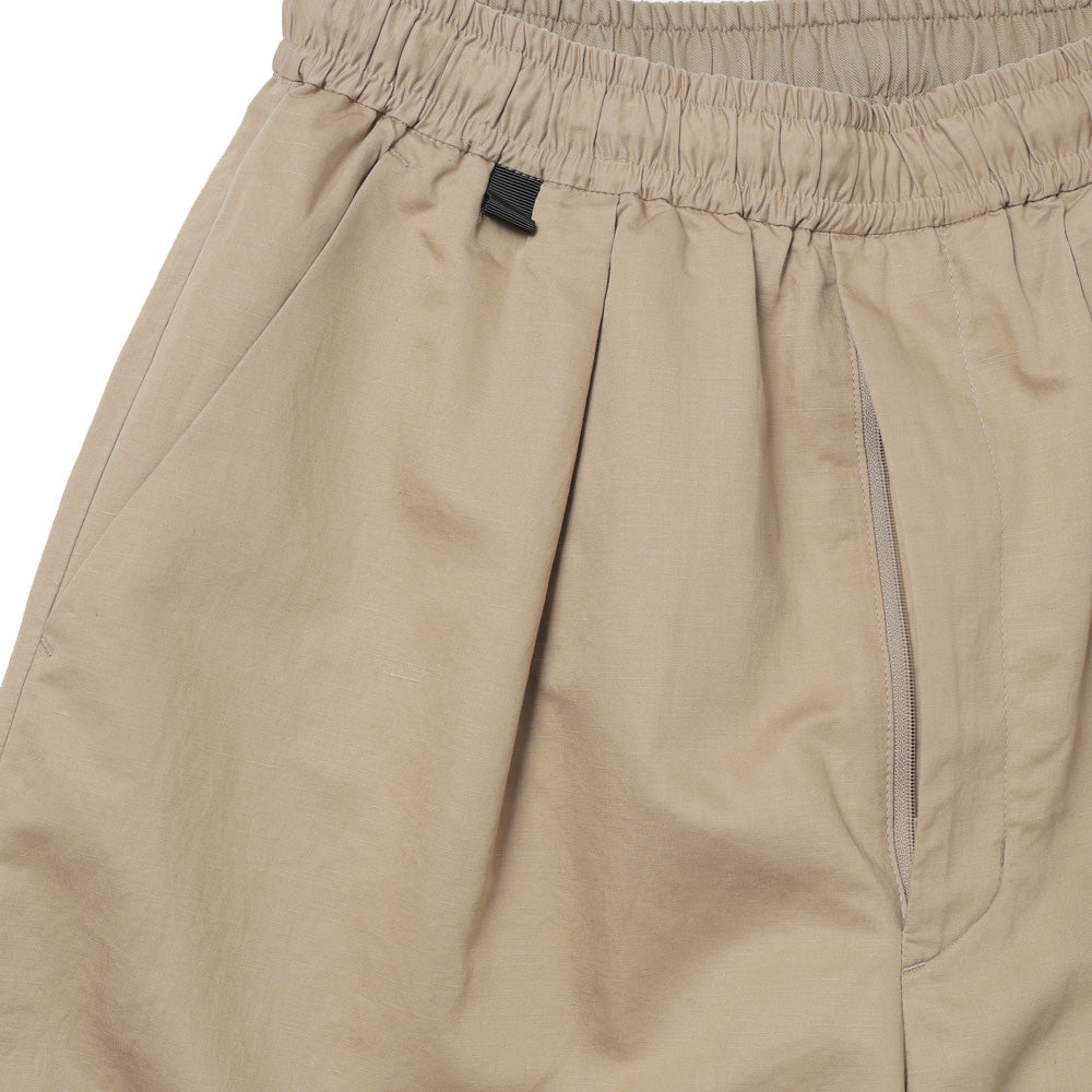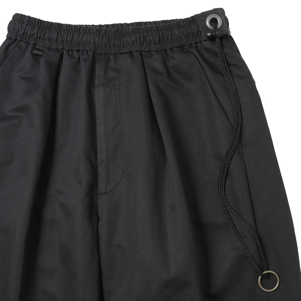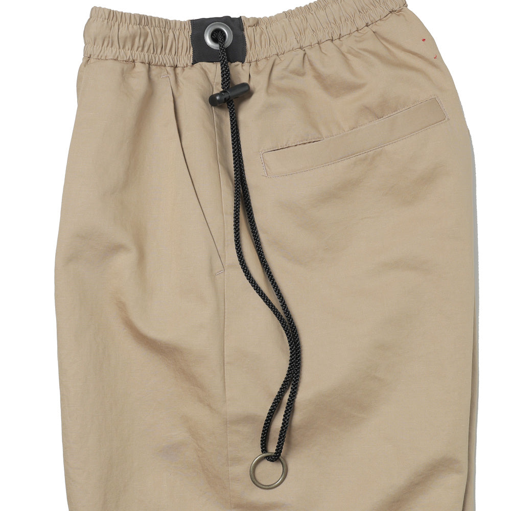COLOR・BLACK・BEIGEコットン、リネン、シルクを混紡したイージーパンツになります。製品加工で表面の毛羽を除去し艶と滑り感が特徴の生地になっており、春から夏にかけてとても穿きやすいパンツです。